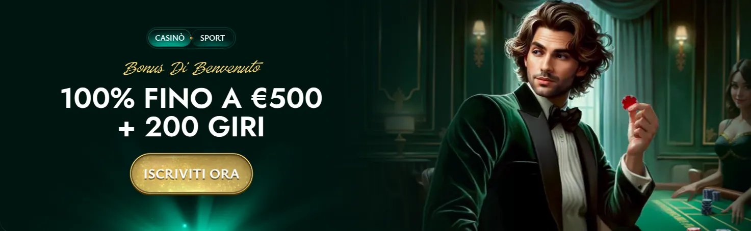 - Bonus di benvenuto al casinò: Perfetto per gli appassionati di slot e giochi da casinò: godetevi un caloroso benvenuto con un generoso bonus del 100% fino a 500 euro, abbinato a 200 giri gratis. Avrete così molto spazio per esplorare la nostra vasta collezione di giochi e trovare i vostri preferiti.